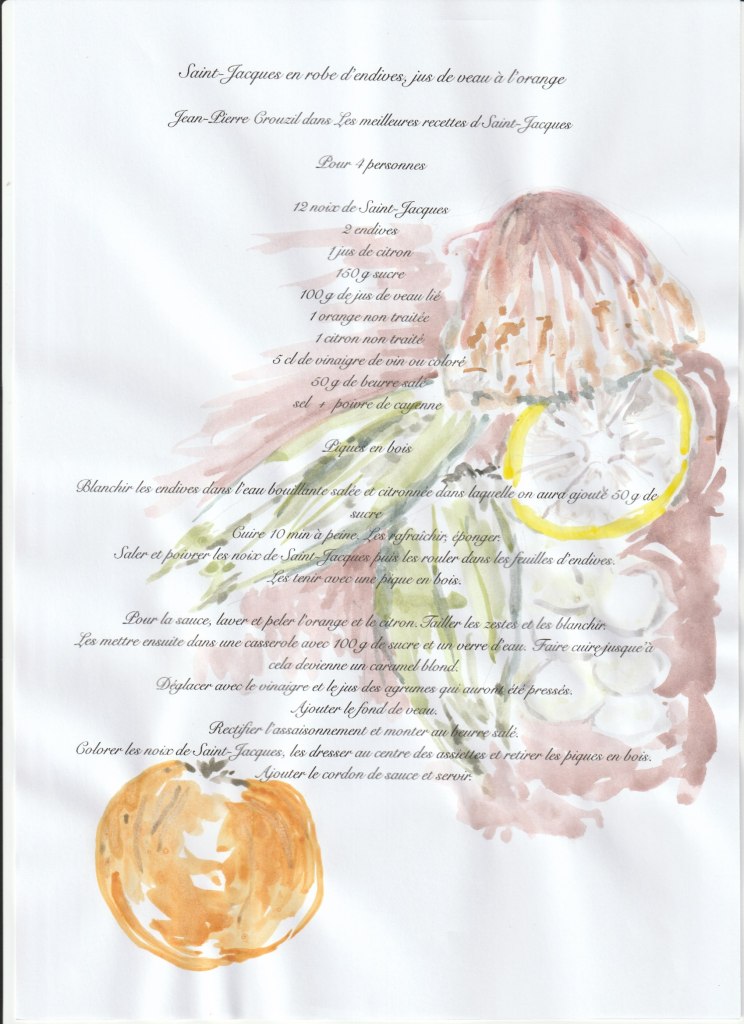 Saint-Jacques en robe d’endives au jus de veau à l’orange